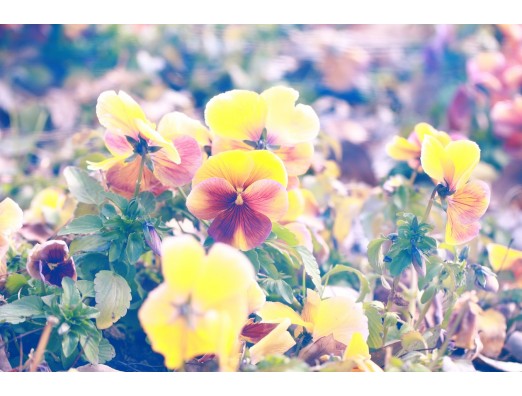 2016-2-10 撮影 西の花壇にて 青いネットの下で綺麗に咲いている”ビオラ”。
