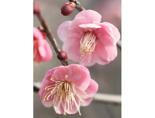 「桃色紅梅」 長居植物園、大池北側にて―――。