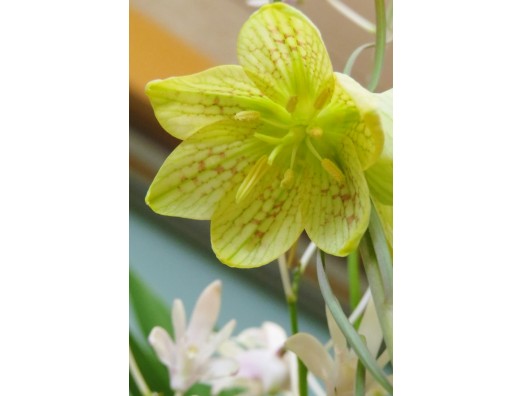 ‘クロユリ’などと同じユリ科バイモ属の―― 「アミガサユリ(編笠百合)」 長居植物園インフォメーションセンターで見頃中☆