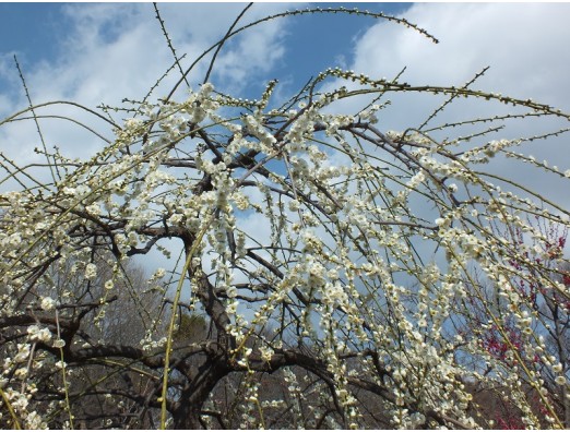 ウメ(梅)、タマガキシダレ(梅・玉垣枝垂)(Prunus mume Sieb. et. Zucc. Tamagaki-shidare) バラ科 サクラ属 花期、2~3月 樹高、2~3m 比較的早咲きで八重咲き、花径、2~2.5cm程で花色は薄桃色と白色。