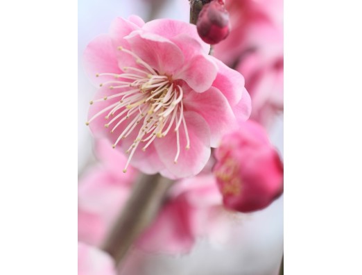 桃色八重の梅 長居植物園、大池北側にて――。
