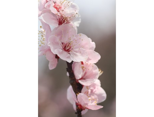 薄紅一重の梅 長居植物園、大池北側にて――。