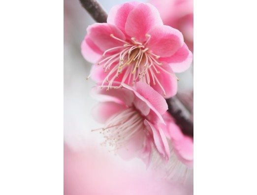 桃色八重の梅 長居植物園、大池北側にて――。