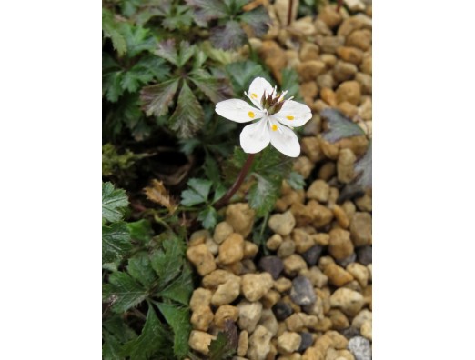 「バイカオウレン(梅花黄蓮)」 長居植物園‘早春の草花展’にて―――。