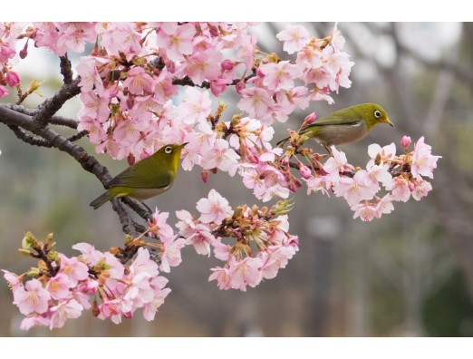 カワヅザクラ&メジロ