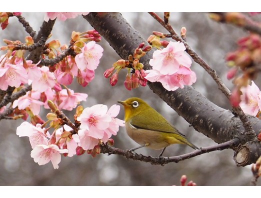 カワヅザクラ&メジロ