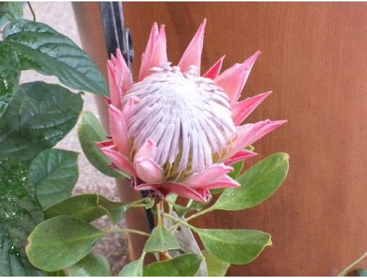 プロテア・キナロイデス(Protea cynaroides) 別名、キング・プロテア(King protea) ヤマモガシ科 プロテア属 花期、3~6月 樹高、1~2m 南ア原産の常緑低木、花色は桃色で花径、20~30cmと豪華な花でリトル・プリンスの呼名も有る。