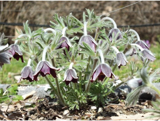 オキナグサ(翁草)(Pulsatilla cernua) キンポウゲ科 オキナグサ属 花期、4~5月 草丈、15~40cm 日本の草原などに分布していましたが、今は数が減って絶滅危惧種に指定されています。宿根多年草で、花径、3~5cmで花色は赤、紫、白、黄色。