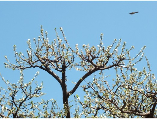 スモモ(李)(Prunus salicina) 別名、ハタンキョウ(巴旦杏) バラ科 サクラ属 花期、4~5月 樹高、7~8m 梅や桜に似た白い花が咲く、梅が終わってから桜が咲き出す寸前、という頃。