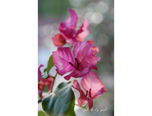 ブーゲンビリアの葉っぱが、透過光で、輝いて、いました。