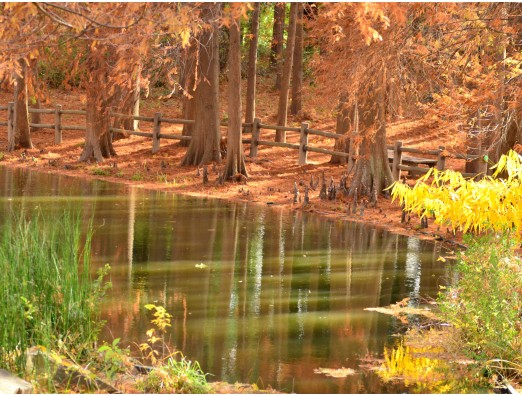 秋の小池、静かで美しいです。