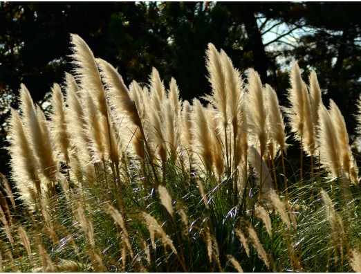 パンパスグラス、金色に染まってます。
