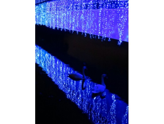 長居植物園ガーデンイルミネーションの目玉「アクアブリッジ (Aqua bridge)」☆ イルミネーションとコブハクチョウが同時に観られるというのは、世界でもここだけではないでしょうか☆☆☆