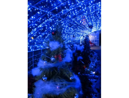 長居植物園ガーデンイルミネーション2014の「光のトンネル」と呼ばれるスポットです。中へ一歩踏み込めば、大銀河の星々の燦めきを思わせる空間が広がります☆ また、旬のポインセチアなどの花々やクリスマスシーンを演出する可愛らしいデコレーションがたくさん飾られています。