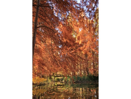 真っ赤に紅葉したラクウショウ。異国情緒が漂います。