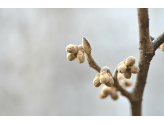 マンサクの実、毛深く可愛いです。