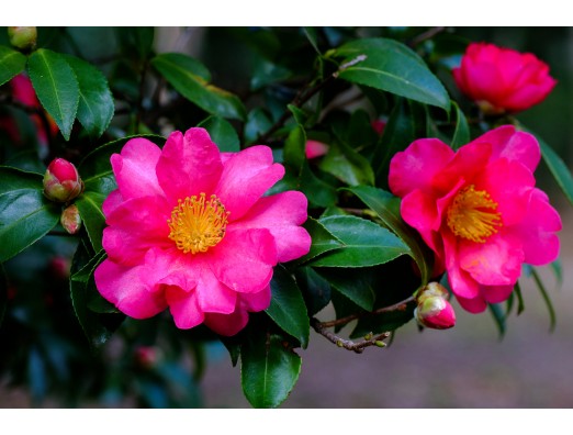 冬の寒さを耐え忍んで サザンカが可憐に咲いています。