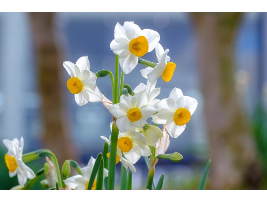 日本水仙がきれいです。 花と緑と自然の情報センターを背景に撮って見ました。