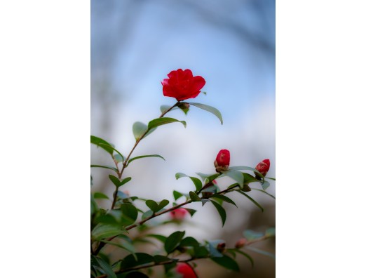時雨のち晴れ、 冬の青空と赤い山茶花のコントラストが美しい、 まさに姫椿。