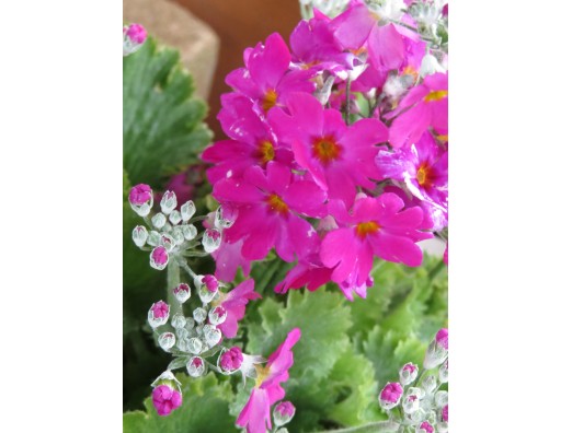 ‘化粧桜’とも呼ばれる桜草科の「プリムラ・マラコイデス」 花と緑と自然の情報センターにて――。 [2015.1.31]