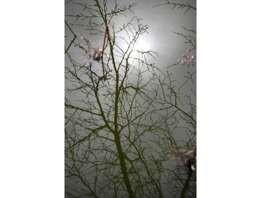 池に映った太陽と桜の木です。 あとひと月もすると、桜の花が咲き誇る季節となります。
