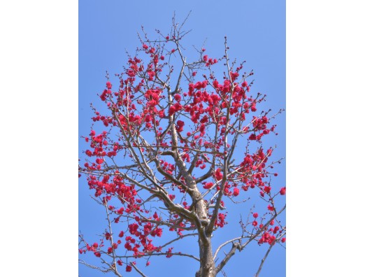 青い空に赤い梅の花、より一層綺麗にみえます。