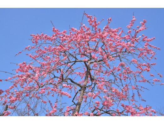 青い空に梅の赤、自然の色がとっても素敵ですね。