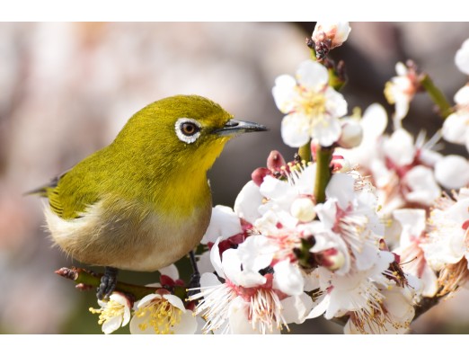 メジロに逢いたいと思い長居公園に、梅園に着くと丁度メジロが待っていてくれました、丁度満開の白梅をバックにメジロを撮ることが出来ました