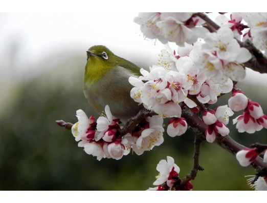 満開のウメで賑やかに蜜を吸っていました。お天気が悪かったのが残念。
