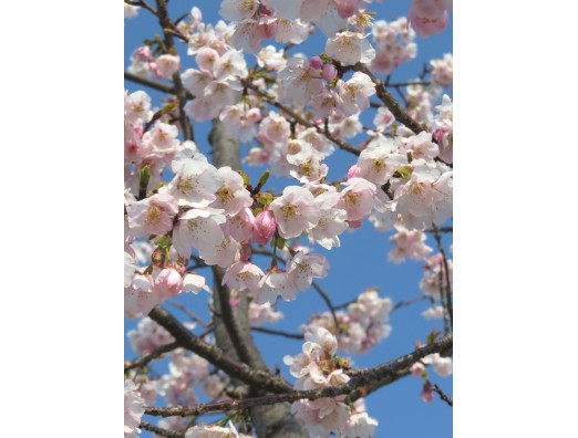‘河津桜’のプレートを付けたやや白っぽい桜…。 長居公園、自由広場にて――。