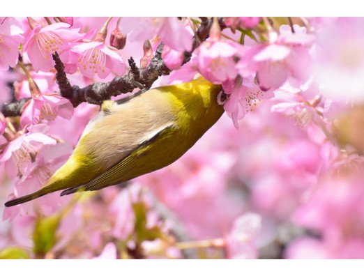 満開の桜をバックに目白が撮りたくて長居公園に、晴天の下、満開の桜をバックにメジロを撮ることが出来ました