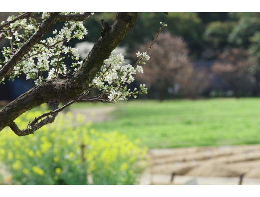 春の香りがする昼下がり、 菜の花もスモモも満開でした。
