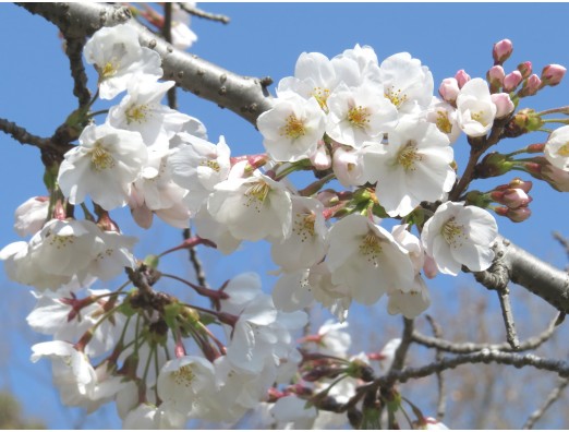 「ソメイヨシノ(Somei-yoshino)」が咲き始めました――。 園内、大池西側が一番よく咲いているようです。