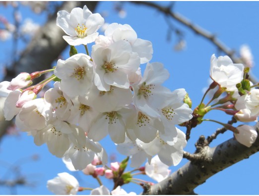 「ソメイヨシノ(Somei-yoshino)」の咲き始め――。 園内、大池西側にて。