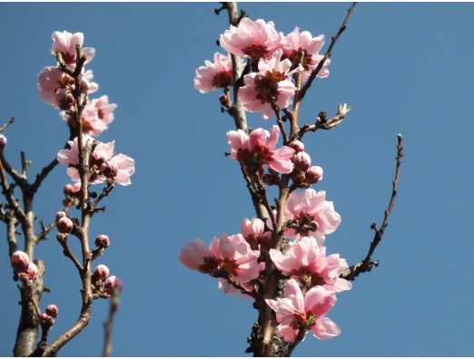ホウキセイハナモモ(箒性花桃)(Prunus persica Fastigiata) 桃色 別名、テルテモモ(照手桃) バラ科 サクラ属 花期、3~4月 樹高、3~5m