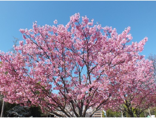 サクラ・ヨウコウ(桜・陽光) (Prunus ×yedoensis cv. Amagi-yoshino×P.campanulata) バラ科 サクラ属 花期、4月 樹高、5~8m 落葉広葉樹、天城吉野と寒緋桜の交配種。花は花径、4cmと大輪で淡紅紫色。