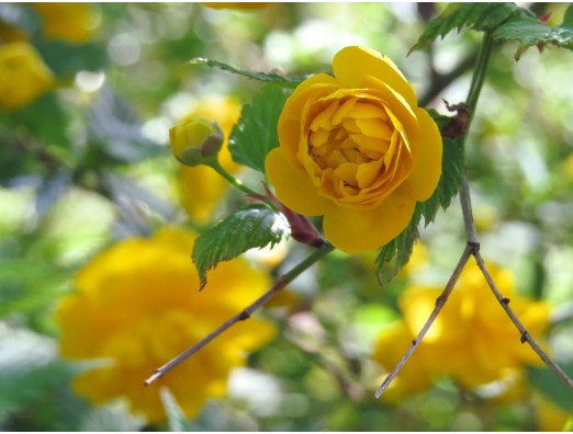 見頃を迎えている「ヤマブキ(山吹)」――。 万葉集に登場する植物に出会える‘万葉のみち’にて。