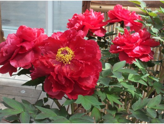 ボタン(牡丹)(島大臣・しまだいじん)(Paeonia suffruticosa Shimadaijin) ボタン科 ボタン属 花期、4~5月 樹高、1~1.5m 花径、20~25cm、花色、濃紫色。千重咲きの大輪。1953年 日本