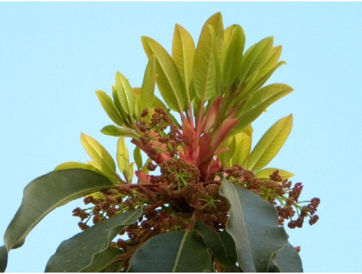 ユズリハ(譲葉)(Daphniphyllum macropodum) ユズリハ科 ユズリハ属 花期、4~5月 樹高、10m 新葉が成長して旧の葉と交代するのがはっきりしているので譲葉の名が有る。