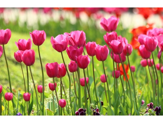 大花壇の今年の主役、赤いチューリップがきれいです。