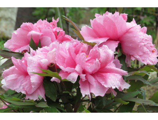牡丹「八千代椿(Paeonia‘Yachiyo-tsubaki’)」 長居植物園、雨上がりの牡丹園にて――。