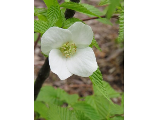 咲き始めの「シロヤマブキ(白山吹)」 長居植物園、渓流西側にて――。