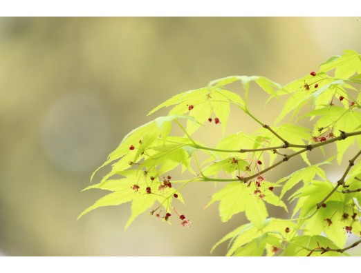 新緑のモミジが赤い花を咲かせてました。