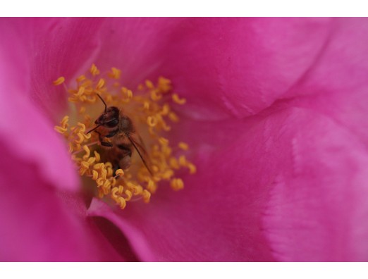 初めて知ったのですが、ハマナスってバラ科だったのですね。 たくさんのミツバチが忙しそうに蜜集めしてました。