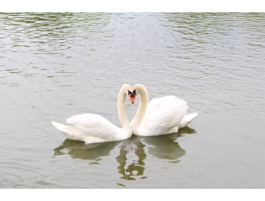 大池でなかむつまじい白鳥に出会いました。 遠くからゆっくり近づいて、最後に、こんなハートを見せてくれました。