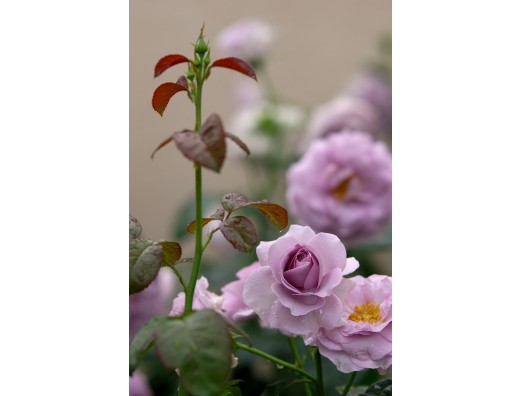 紫色の気品あるばら、雨上がりの花びらが素敵です。
