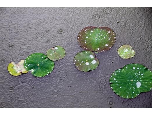 蓮の葉に付いた水滴って なんかいい感じですね 雨粒がさらに風情を感じさせます