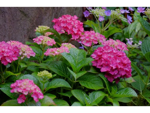 雨上がり、アジサイの淡い色がいっそう映えます。