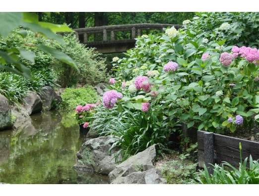「渓流と橋の風景」 長居植物園、アジサイ園にて――。