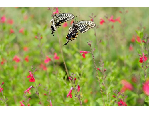 チェリーセージの畑の中で、アゲハチョウのコラボです。